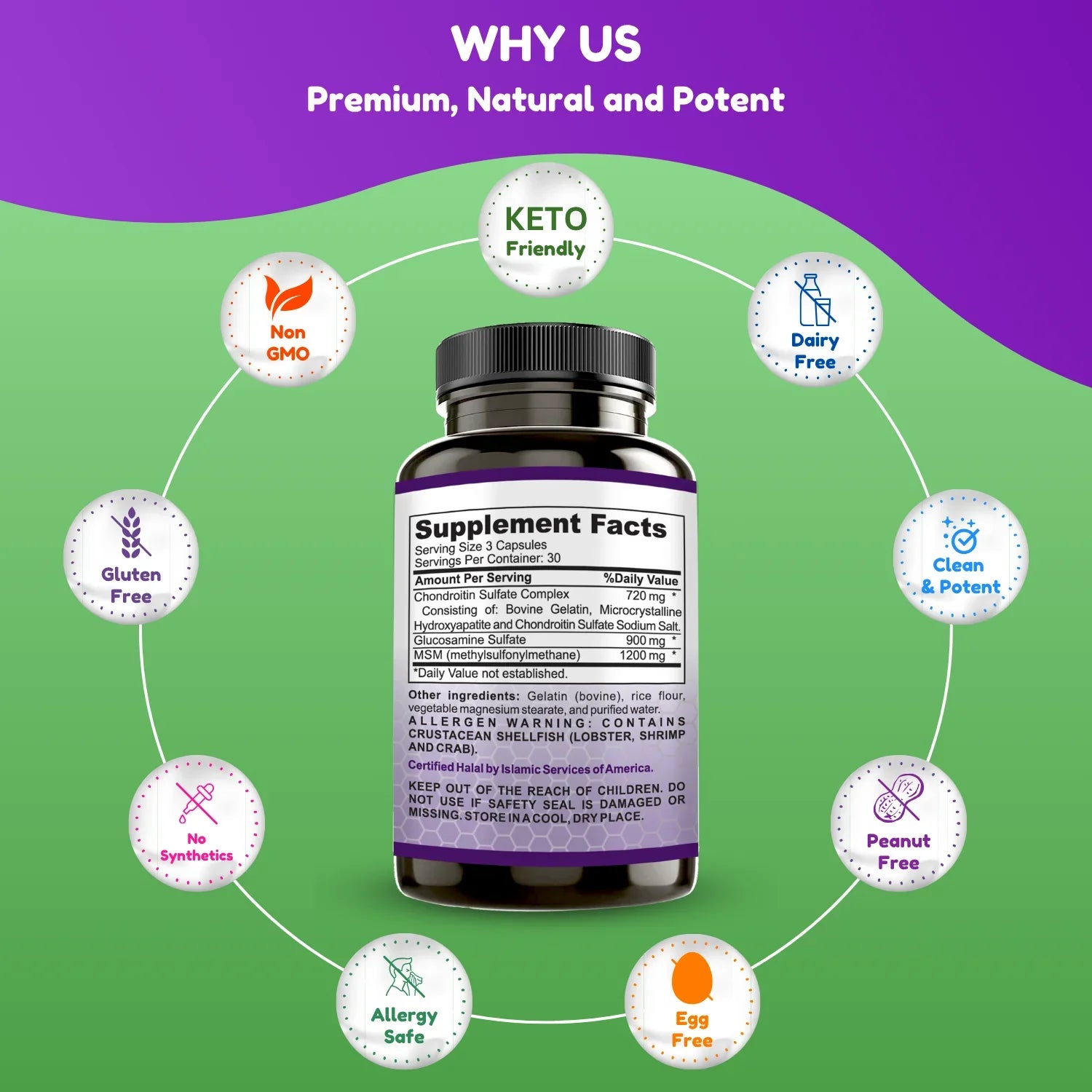 This formula includes key ingredients trusted by active individuals and recommended for comprehensive joint care. Glucosamine is widely recognized for its ability to provide structural joint support and is often included in top-rated supplements for joint health. Alongside this, chondroitin pairs with glucosamine for superior nourishment, while MSM works to further stimulate healthy mobility. Many experts consider this blend — sometimes referred to as glucosamine and chondroitin or glucosamine and MSM — among the most effective combinations for daily joint maintenance. These trusted ingredients work together to help you take every step in comfort and assurance.