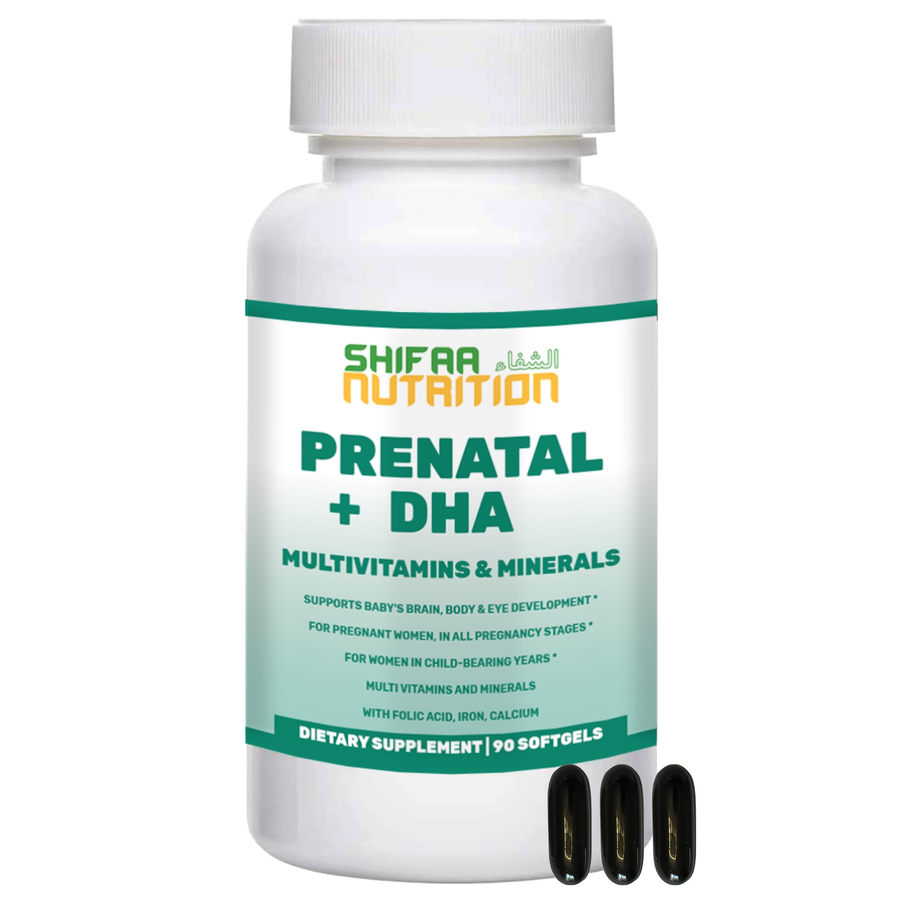 Introducing SHIFAA NUTRITION Prenatal + DHA, a formula created for mothers-to-be. Every serving contains essential, top-quality nutrients. You and your baby receive much-needed support during this important journey. The chosen ingredients guarantee purity, safety, and effectiveness, helping provide reliable nutrition as you move from conception through pregnancy.