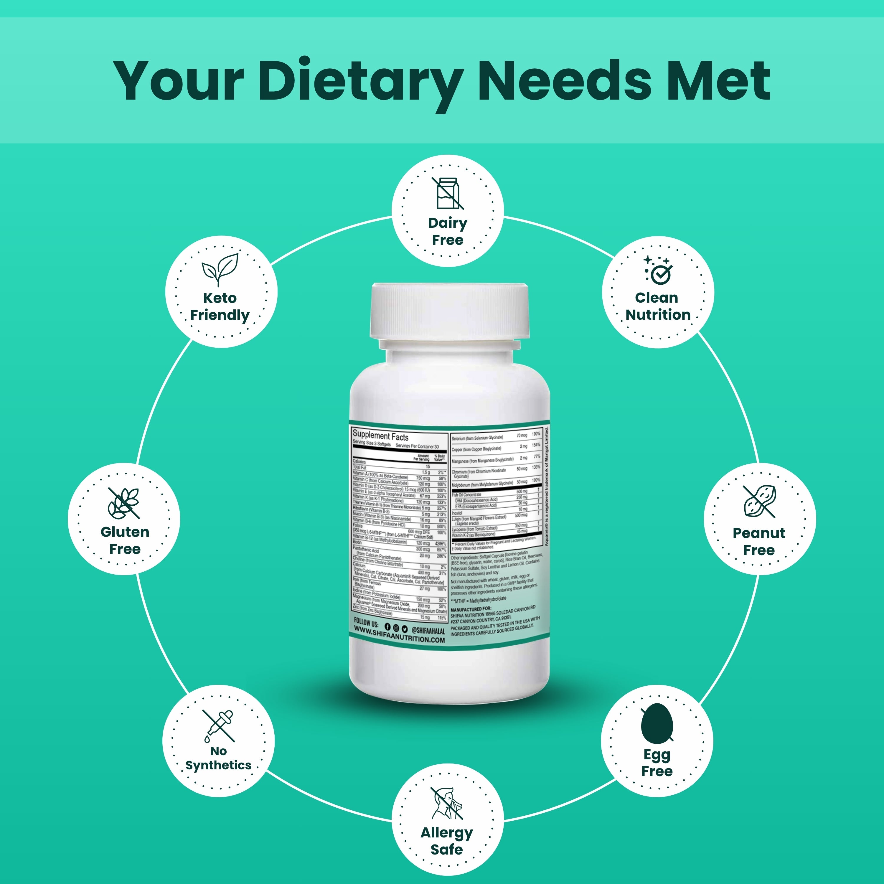 Our commitment to safety and cleanliness guides every manufacturing step. All of our products are dairy-free, egg-free, and gluten-free, making them suitable for various dietary preferences, including keto-friendly diets. No yeast, wheat, milk, eggs, or shellfish are used, ensuring there are no common allergens. The blend is made without fillers, binders, preservatives, or artificial additives—guaranteeing you get only what you need for your health.