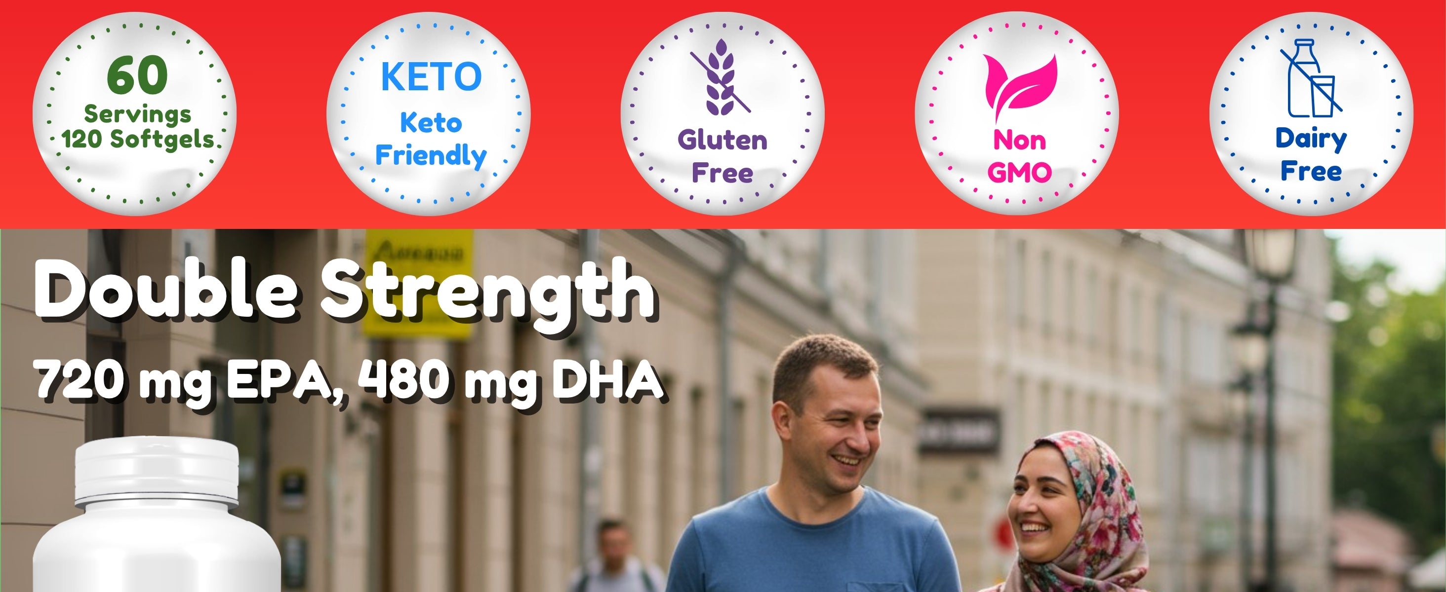 Double Strength Omega-3 Softgels: Delivers 720mg EPA and 480mg DHA for broad-based wellness.