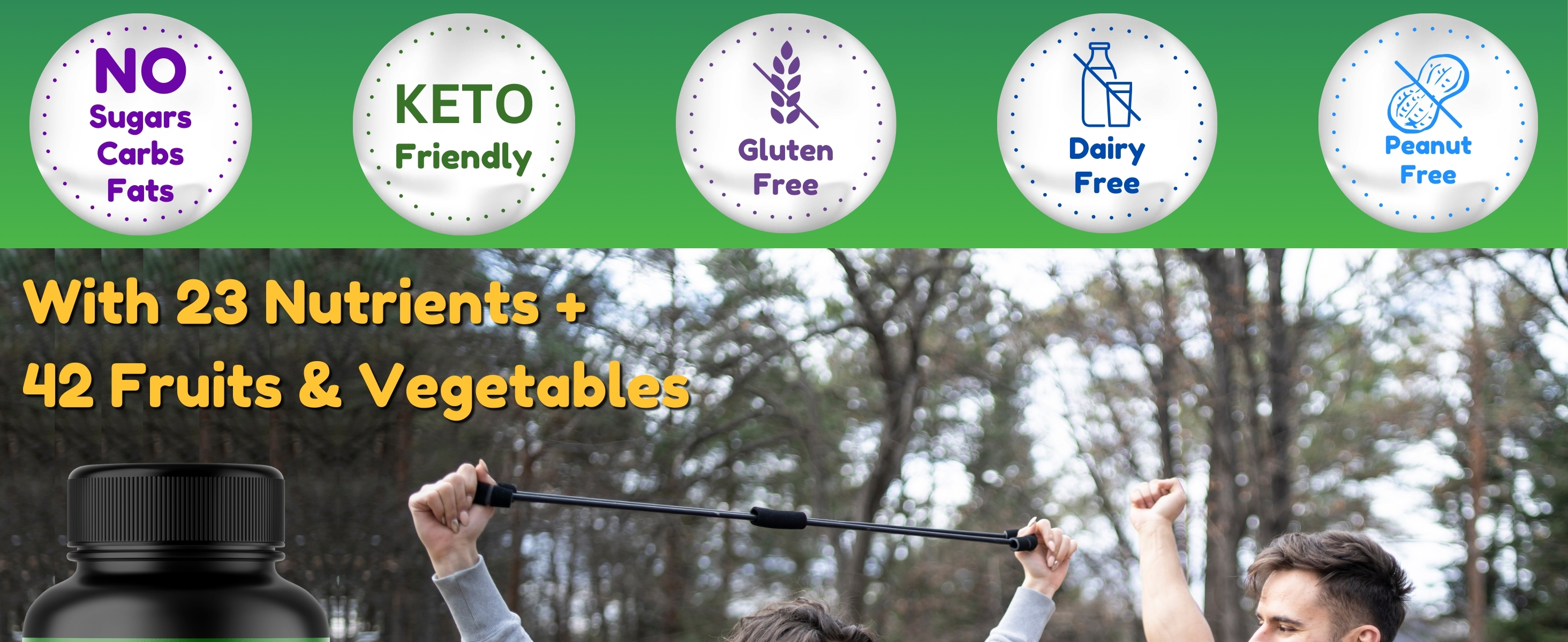 This product combines 23 essential nutrients with 42 fruits and vegetables. This powerful mix fills nutritional gaps efficiently for men and women. The comprehensive formula provides daily support and long-term health benefits.