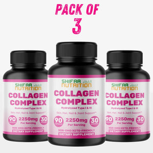 SHIFAA NUTRITION Halal Collagen Complex Capsules have 3 capsules per serving. Each bottle has 90 Capsules, it can last up to 30 days (30 Servings).