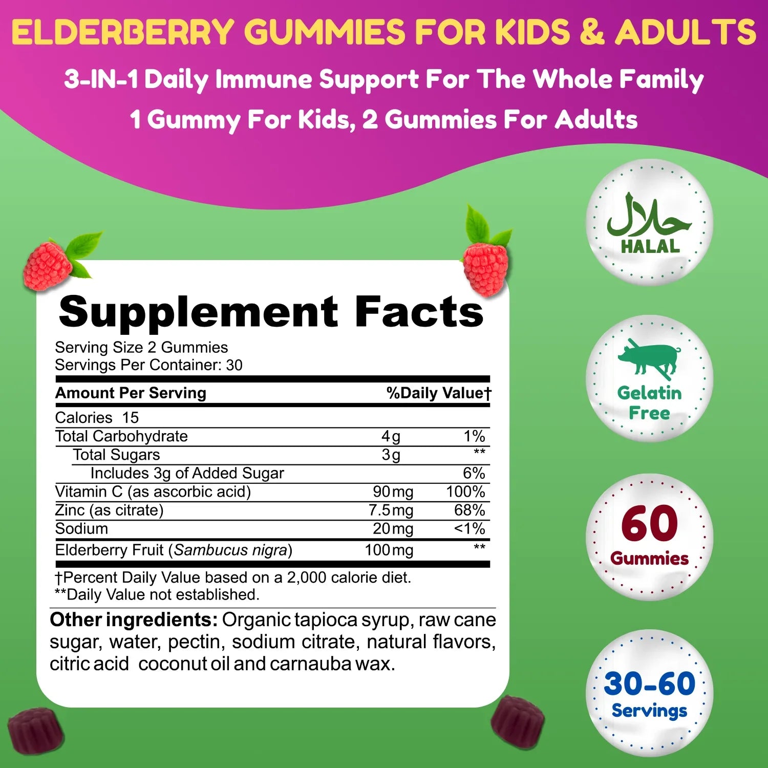 Pack Of 3 - Halal Elderberry Gummies For Kids & Adults