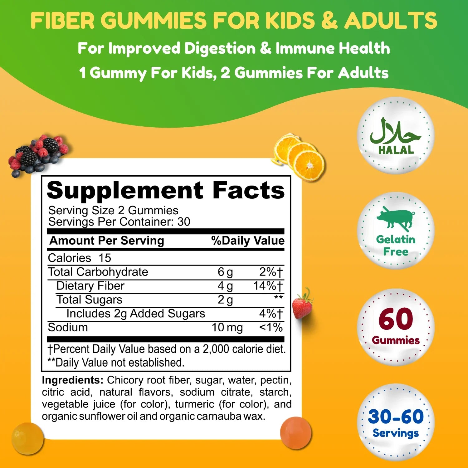 Pack of 3 - Halal Fiber Gummies for Adults & Kids