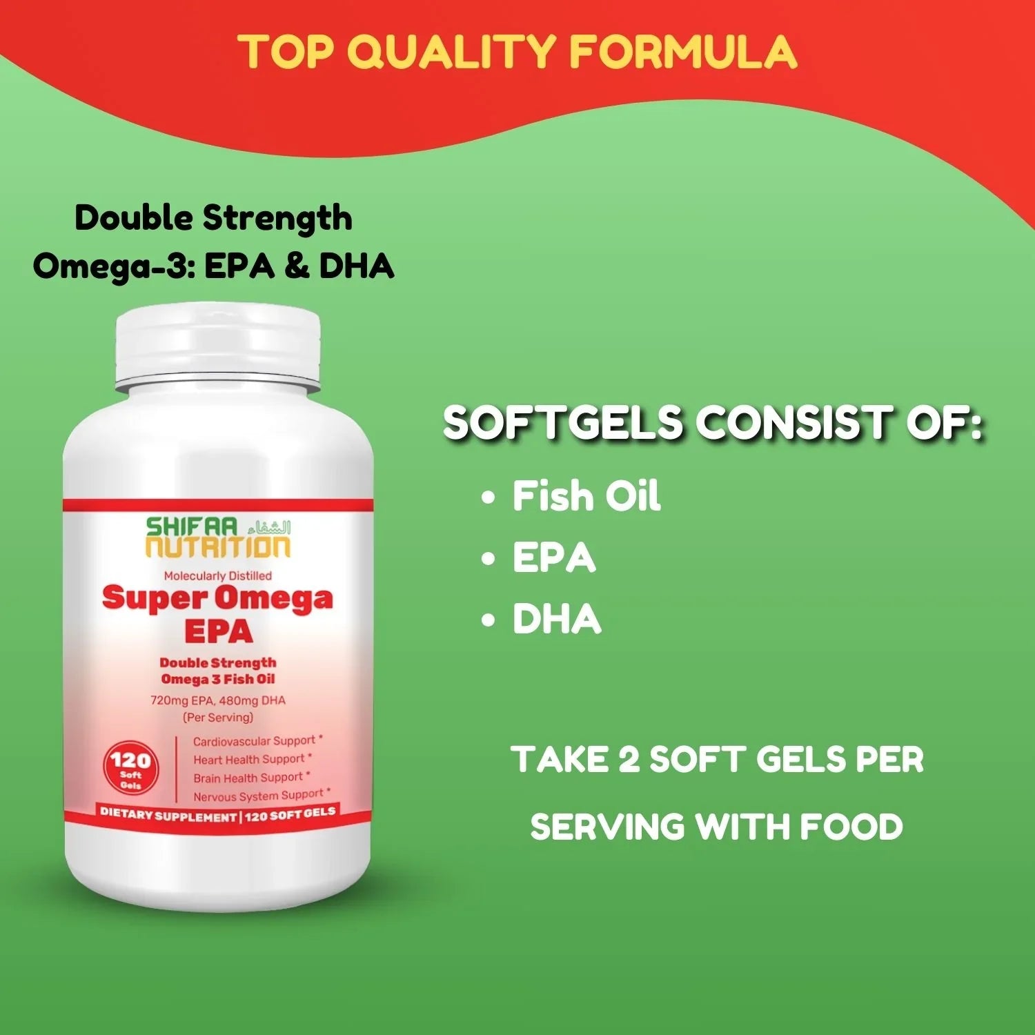 2 Soft Gels Per Serving. Double Strength Halal Fish Oil bottle has 120 Soft Gels, and It will last for 60 days.