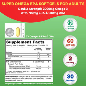 Pack of 3 - Halal Super Omega EPA Fish Oil Softgels